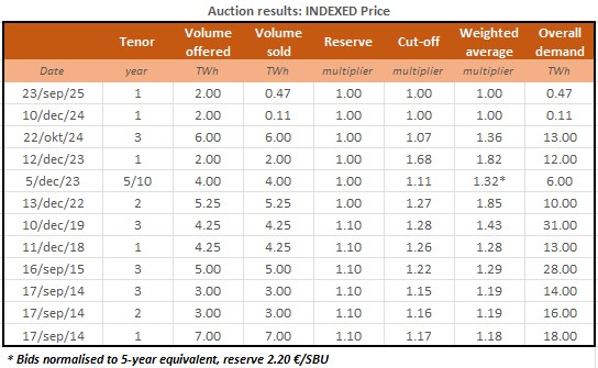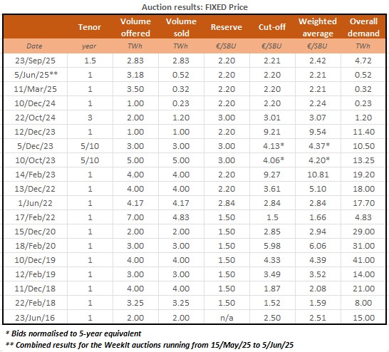 Historical auction results